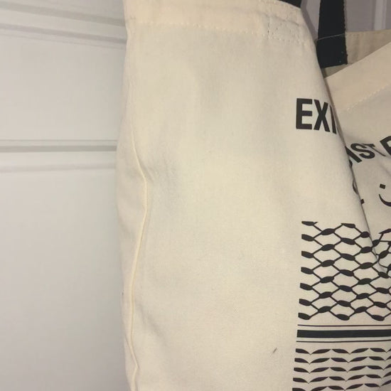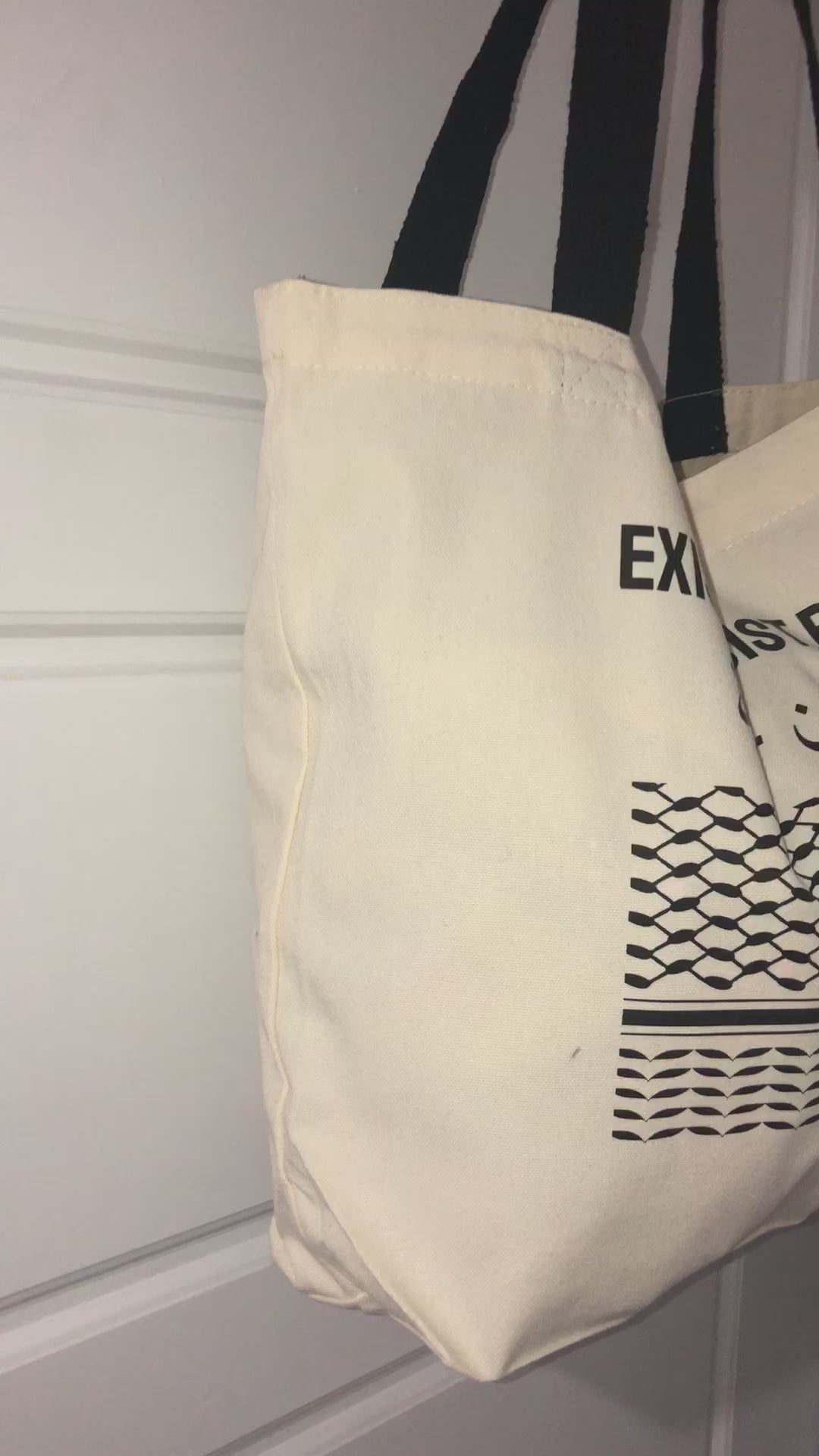 Carry a powerful symbol of heritage and hope with the White Kuffiyeh Tote. Featuring a magnetic snap to secure the tote, it also shows the iconic kuffiyeh pattern and inspiring messaging of both "Free Palestine" message in Arabic and "Exist Resist Return", this tote blends meaningful design with everyday practicality. Perfect for expressing your support while keeping your essentials close, it’s a stylish and purposeful accessory for daily use.