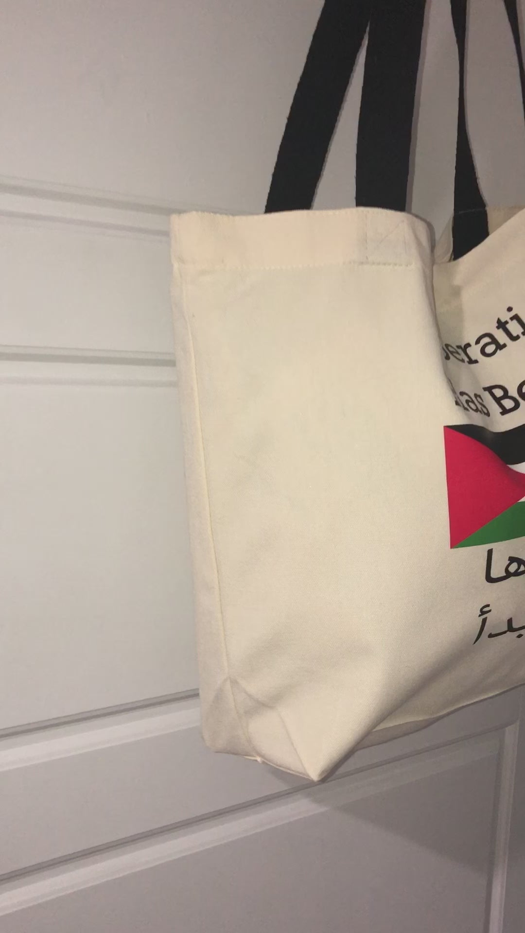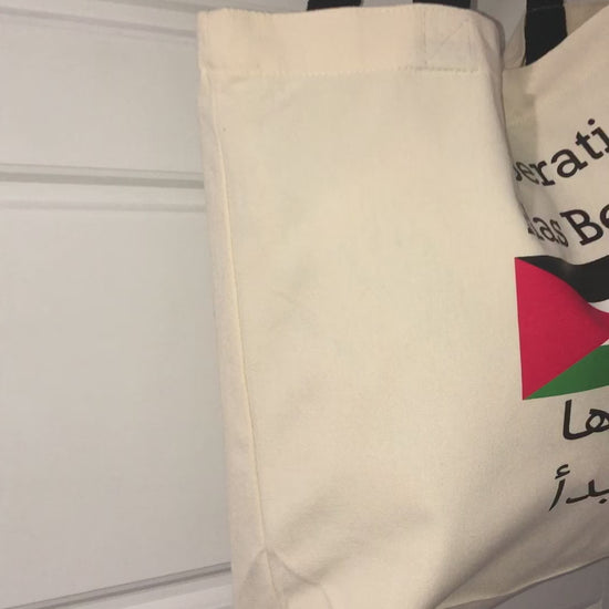 Show your support with the White Liberation Tote featuring the Palestinian flag. This sturdy, spacious tote combines everyday functionality with a magnetic snap alongside a powerful symbol of heritage and resilience. Its clean white background highlights the vibrant flag design, making it a striking accessory for shopping, work, or casual outings. Carry your essentials while proudly expressing your solidarity and Palestine pride.