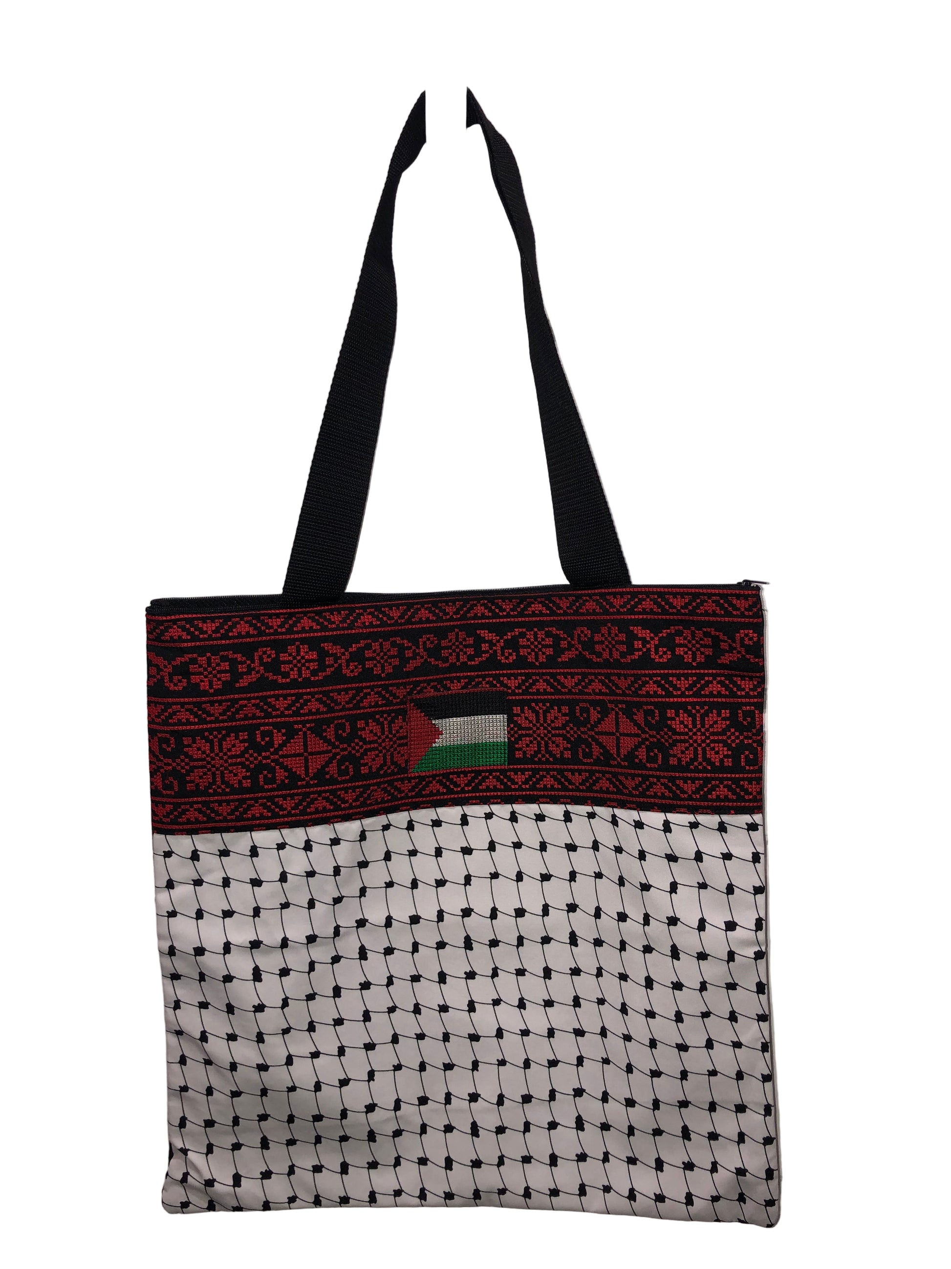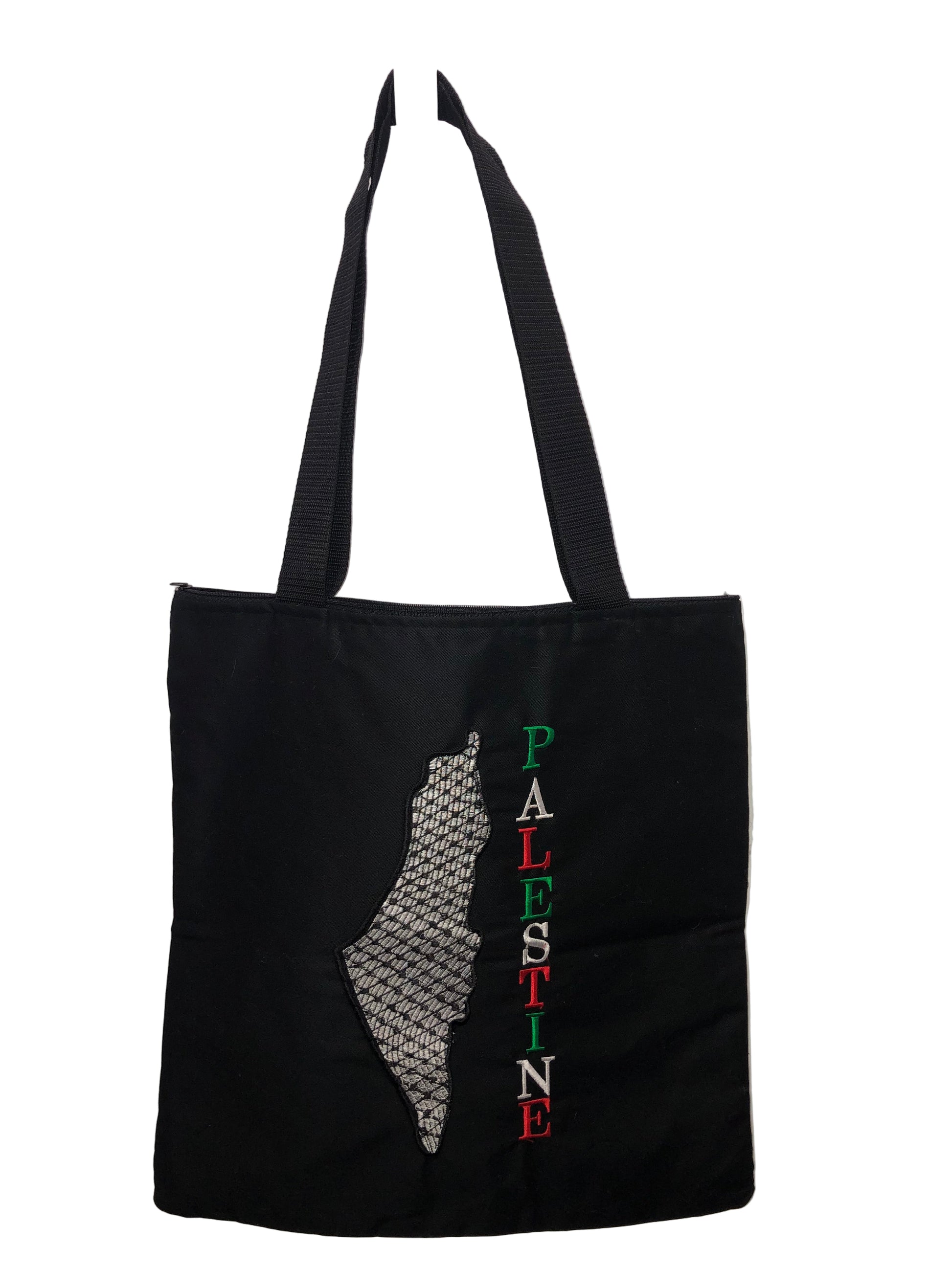 Carry a piece of heritage with this embroidered Palestine tote bag, designed for everyday use. Its sturdy design with a zipper makes it perfect for securing your belongings for shopping, work, or casual outings, while showcasing your support and connection to Palestinian culture. Lightweight, spacious and double-sided embroidery, it helps you stay organized and eco-friendly wherever you go.