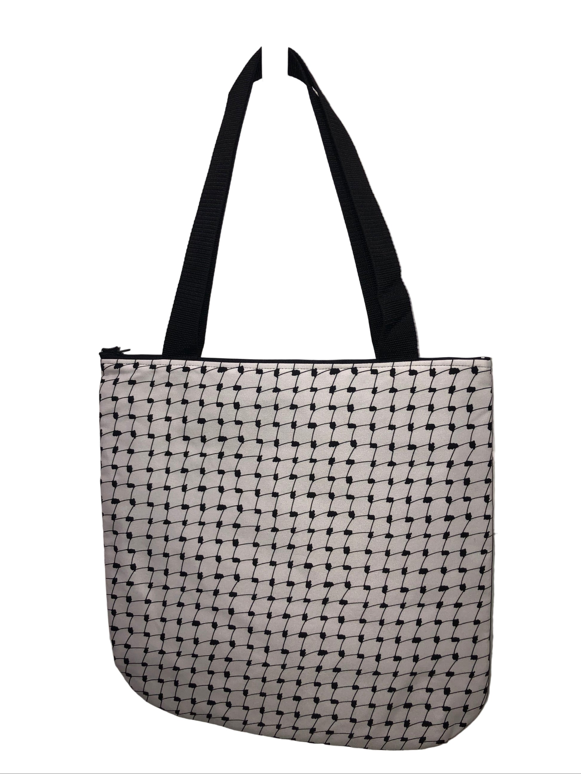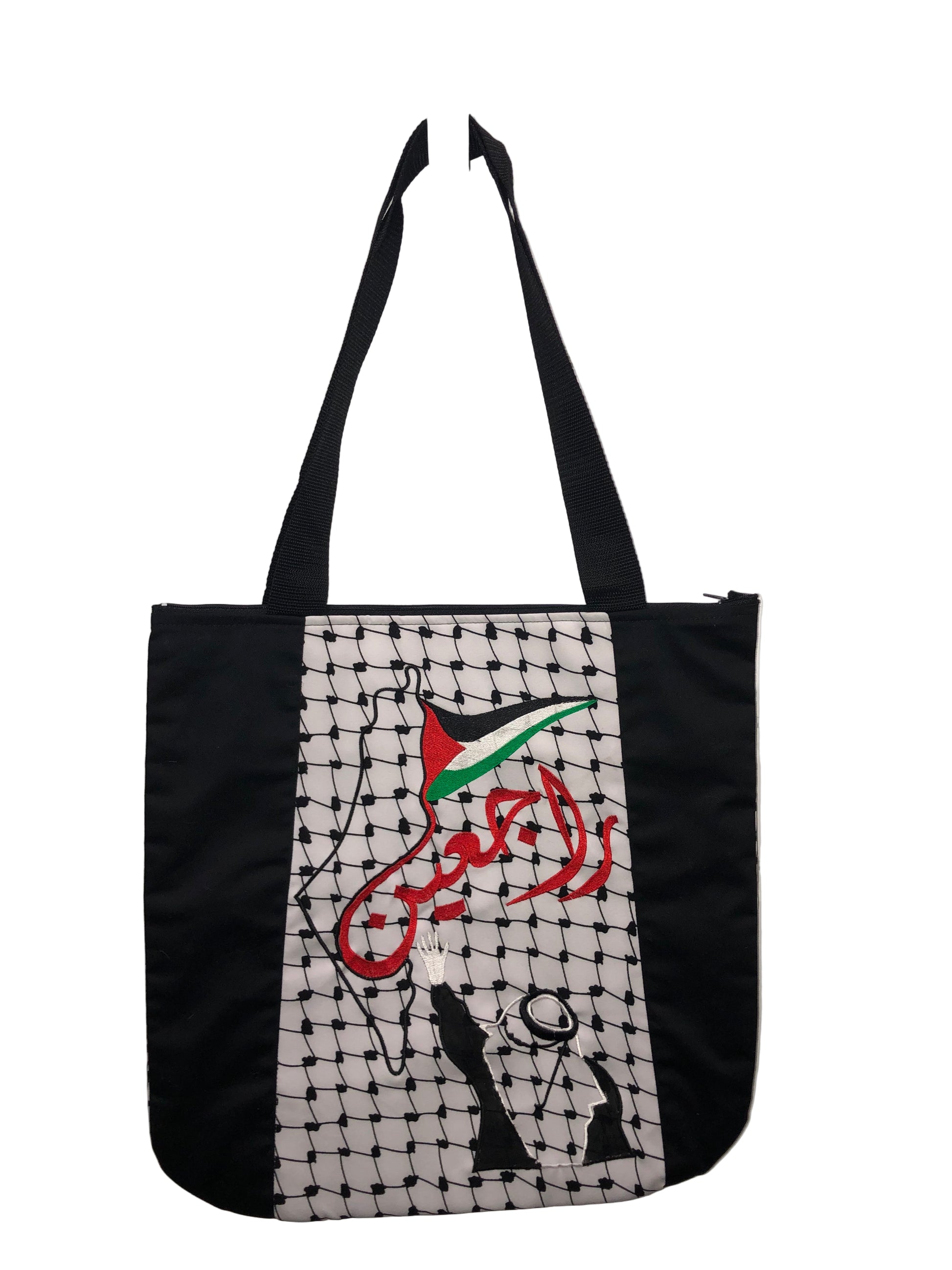 Carry your essentials with purpose using the embroidered Tote Bag RAJEEN. Featuring a zipper to secure your items coupled with the inspiring message "We Will Return," this bag is a meaningful reminder of resilience and hope. Crafted for everyday use, it combines practicality with a powerful statement, making it perfect for those who want to show support and stay connected to a meaningful cause. Durable and spacious, it’s ideal for shopping, work, or casual outings.